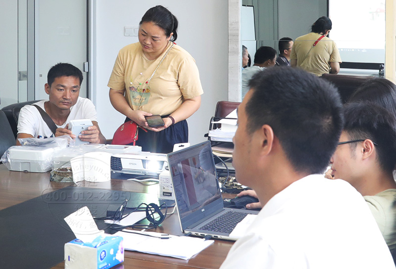 在会议室,我司市场负责人为访问团介绍我司经销合作的智能电表品牌、公司发展情况以及合作的应用案例。之后,我司技术工作人员详细地为客户讲解了关于我司智能电表和预付费抄表管理系统的原理及特点,同时业务代表还用PPT文件给客户展示了我们的预付费抄表管理系统的优势和应用前景。