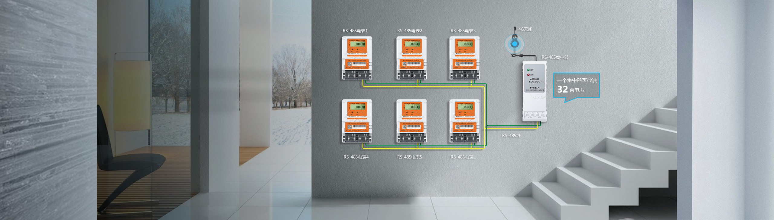 RS485方案适用于类似于出租房的场合,即电表数量不多且安装集中的应用环境