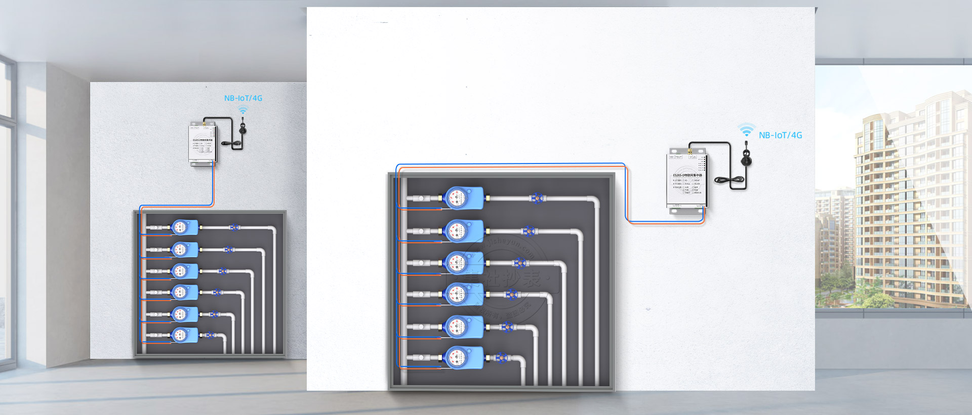 M-Bus远传水表通过集中器将数据转为GPRS/NB-IoT信号,实现远程自动抄表