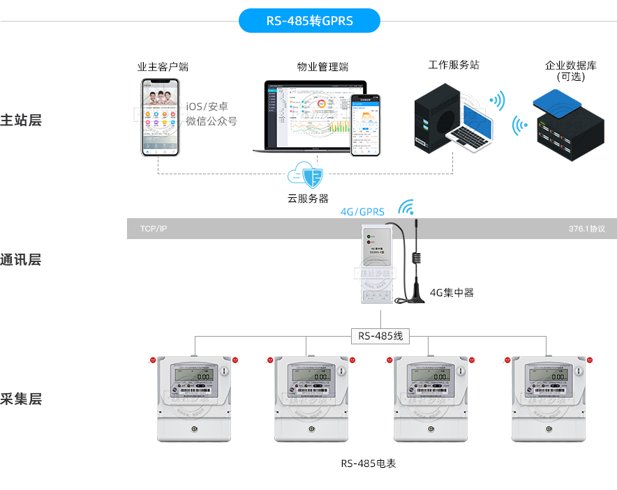 RS-485集中抄表一台RS-485集中器可管理32台电表