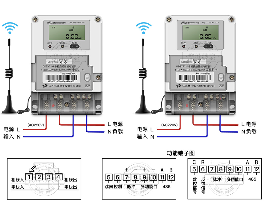 | 电表型号 | 江苏林洋DDZY71-J(内置跳闸继电器) 精度1级 |