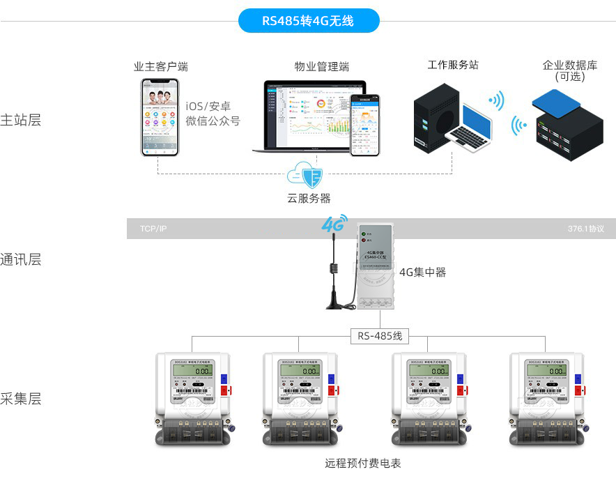 RS-485集中抄表一台RS-485集中器可管理32台电表