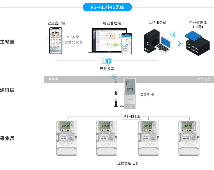 RS-485集中抄表一台RS-485集中器可管理32台电表