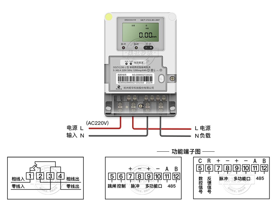 通讯功能支持载波通讯:电表内置载波通讯模块