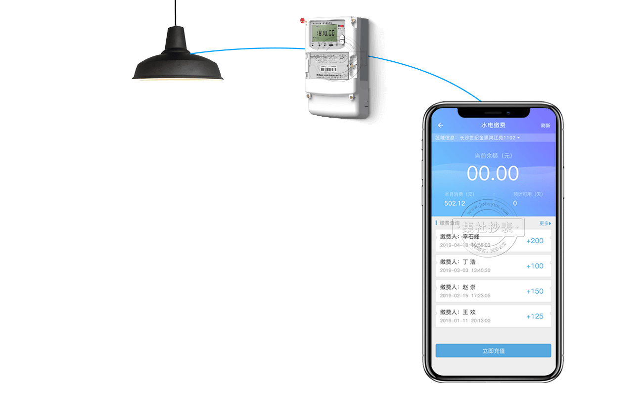 缴纳的电费资金不经过集社直接打入物业企业账户,充值后云台系统按照以下流程向电表发下合闸指令