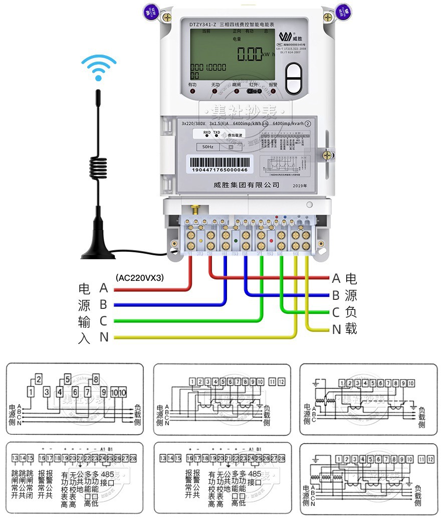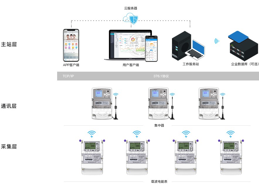 通讯功能支持载波无线通讯:电表直联电力线,通过载波集中器通讯