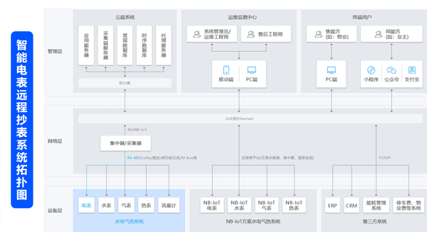 智能电表远程抄表系统结合了物联网技术、通信技术以及大数据等,可以使电表管理人员远程通过手机或电脑掌握每家每户的电表数据情况,远程在线催缴费,减少上门抄表收费的麻烦,提高整体的工作效率。本文主要是带大家来了解下:智能电表远程抄表系统拓扑图。