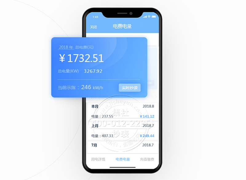 这对于做任何事情都希望简单化自由化的人类大众习惯来说,这种电表看电量看读数的方式实在不符合现在人门的快生活需求。其实,在现在的信息技术和互联网技术下,智能电表的这些数据是可以清楚明了地展示在电脑上的,甚至是手机上,而且这种软件技术已经非常纯熟,成本也很低。就湖南集社远程抄表系统而言,一个电表数据采集器就可以采集100多台电表数据传输至电脑或者手机软件,一个采集器也就几百元钱,一套功能强大的软件系统不超过2000元。