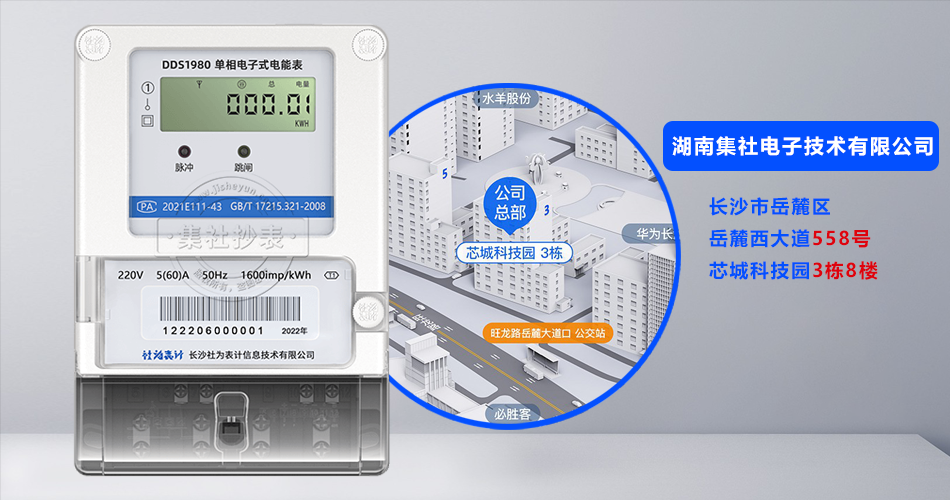 湖南集社电子位于湖南省长沙市岳麓区岳麓西大道558号芯城科技园3栋8楼,是一家专注于销售中高端智能电表品牌的公司,市面上常见的品牌型号智能电表都有,如:长沙威胜DDS3102、社为表计DDS1980、江苏林洋DTZY71-G、杭州炬华DDSF1296a等,原厂正品货源,质量有保障,可以直接通过官网咨询购买,或者拨打24小时在线客服热线:400-012-2295咨询购买,量大实惠。
